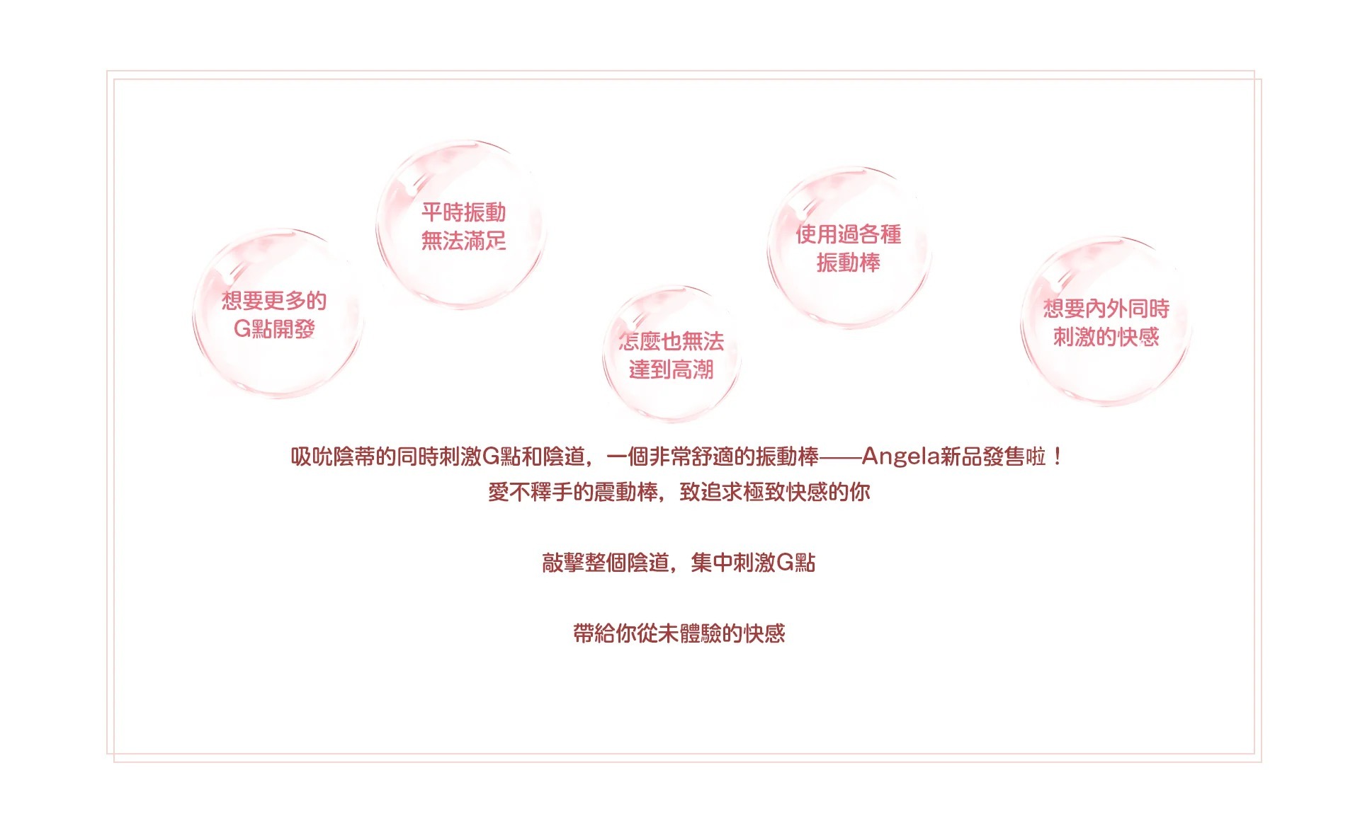 將深層快感融於指尖,Toycod Angela 指交震動棒為您帶來超越想像的性愛體驗!結合叩擊、吮吸與震動三合一功能,專為刺激A.U.C.G四點設計,讓每一個敏感點都得到極致呵護與滿足。