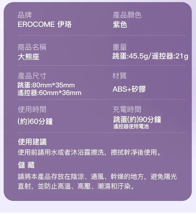 Erocome UrsaMajor 大熊座 是一款智能溫控的熱感遙控震蛋。小巧便攜,為寂寞難耐的女士或沉悶的生活加添點小情趣,燃點快感!