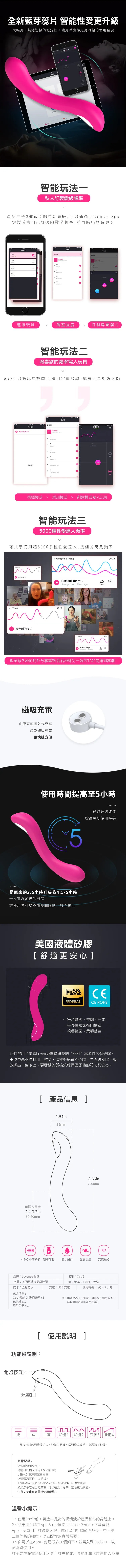 有別於傳統的G點按摩棒,設有獲得專利的「跳動震盪」功能,它與橢圓形的棒頭結合,與「心跳」般的跳動功能,帶來不一樣的快感體驗。