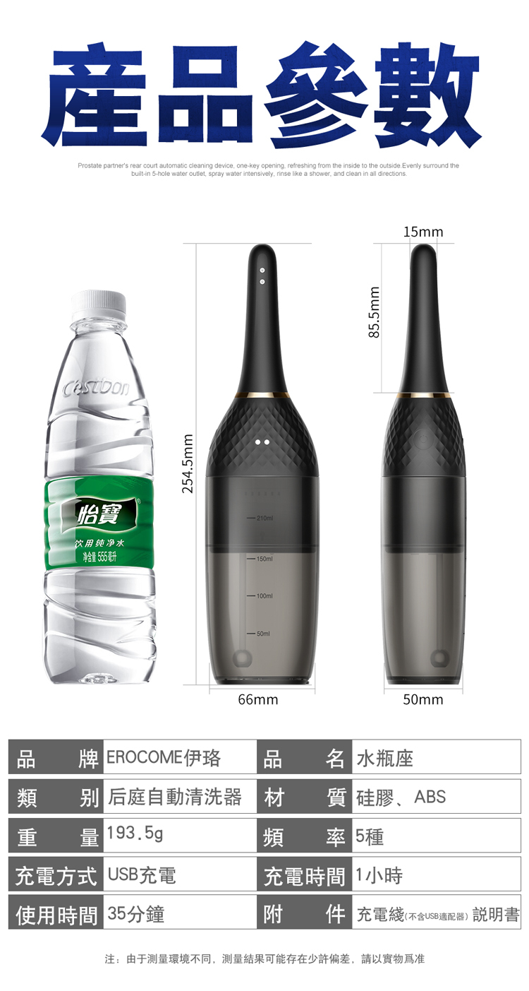 Erocome 推出了Aquarius 水瓶座:一款推翻傳統肛門清洗用具設計的全自動水洗清後庭灌洗器!棒身設 5 個多方位排水口花灑,配上210ml 大儲水量及防逆流設計,確保水流一直潔淨,深層清潔後庭內的污垢!