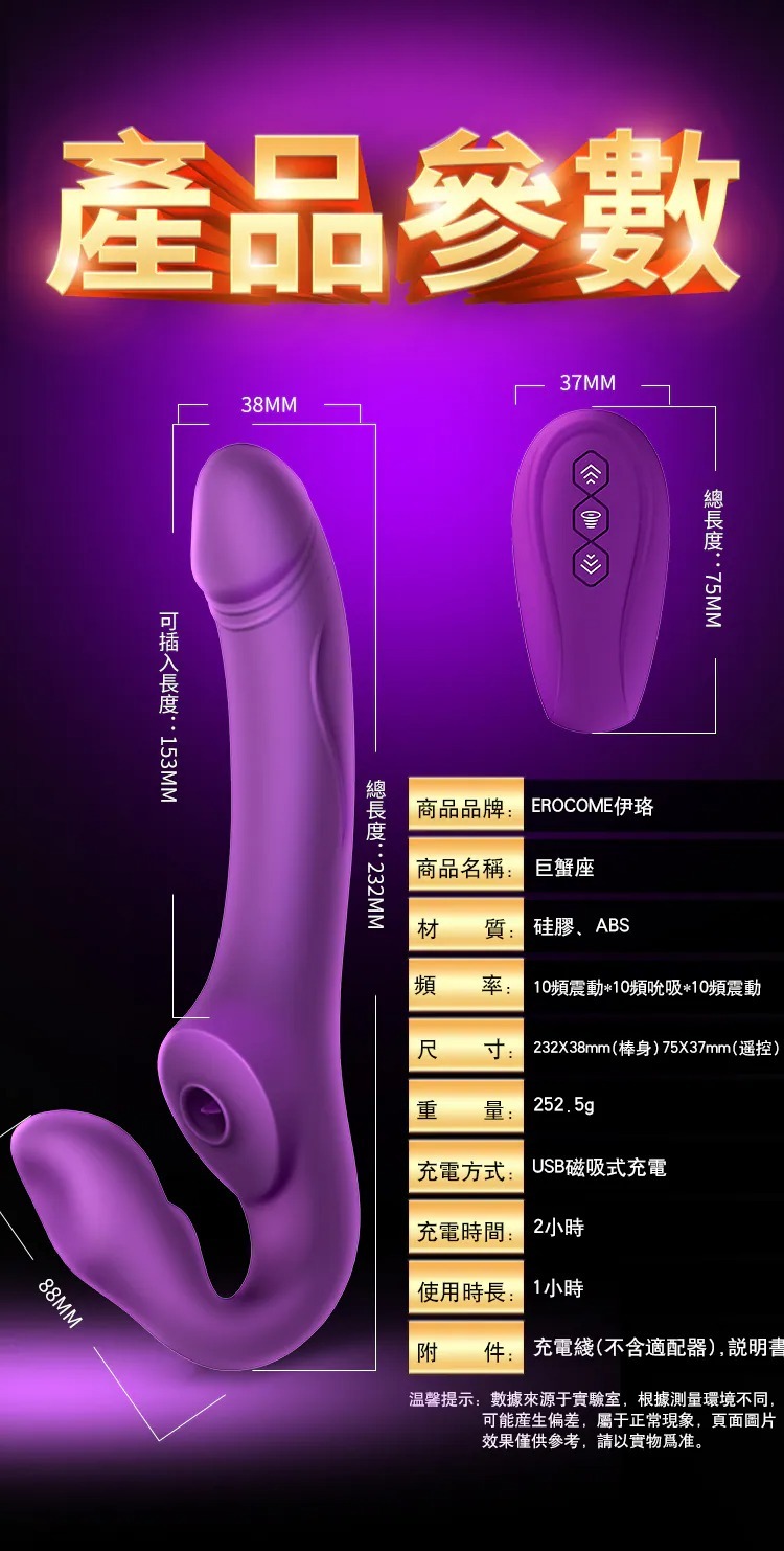 尺寸:232 x 38mm(振動器),37 x 75mm(遙控) 插入直徑為 38mm ,可插入長度為 153 mm