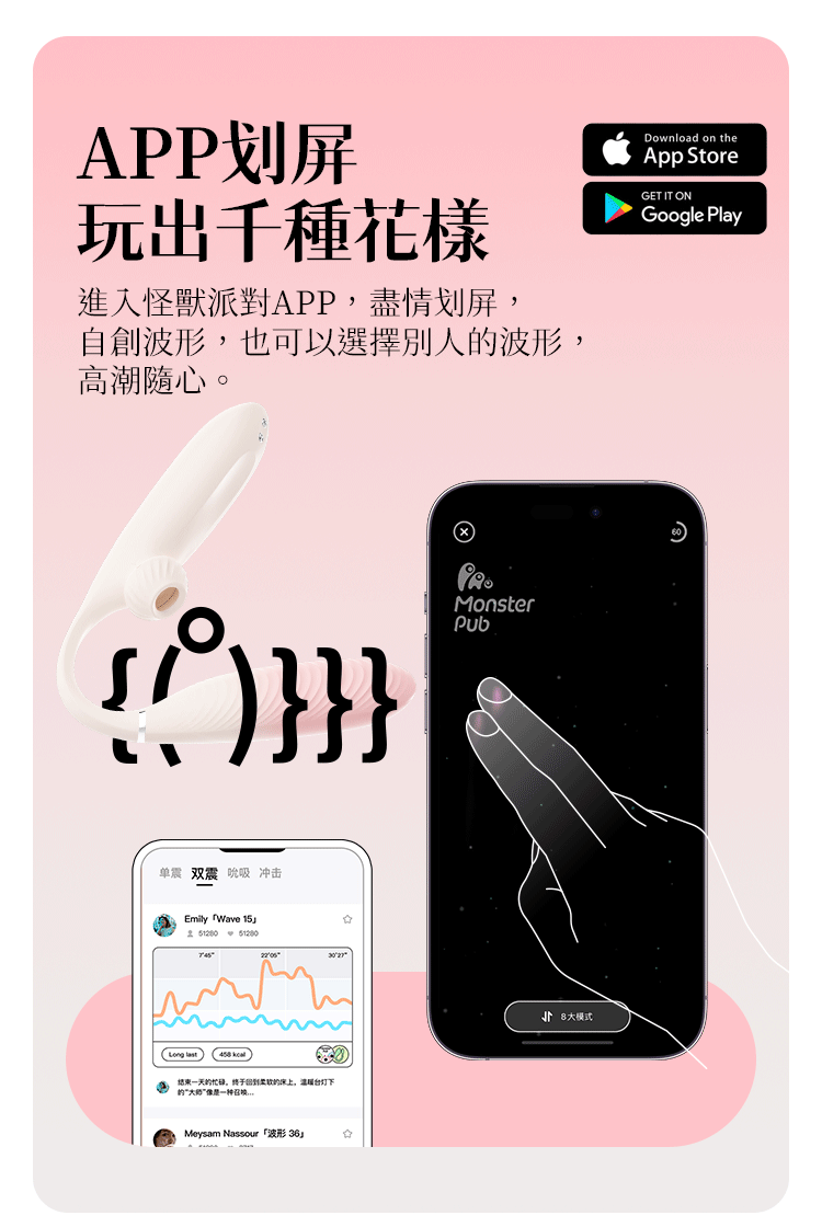 支援 App 智控、可遠距共享波形,獨玩、雙人皆宜。