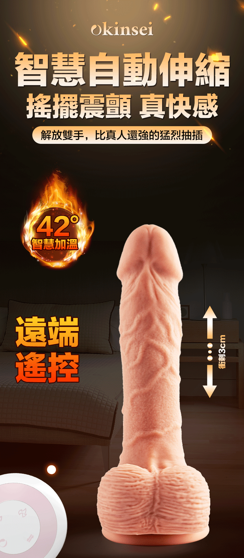 帶加熱和遙控功能的搖擺、伸縮和震動假陽具