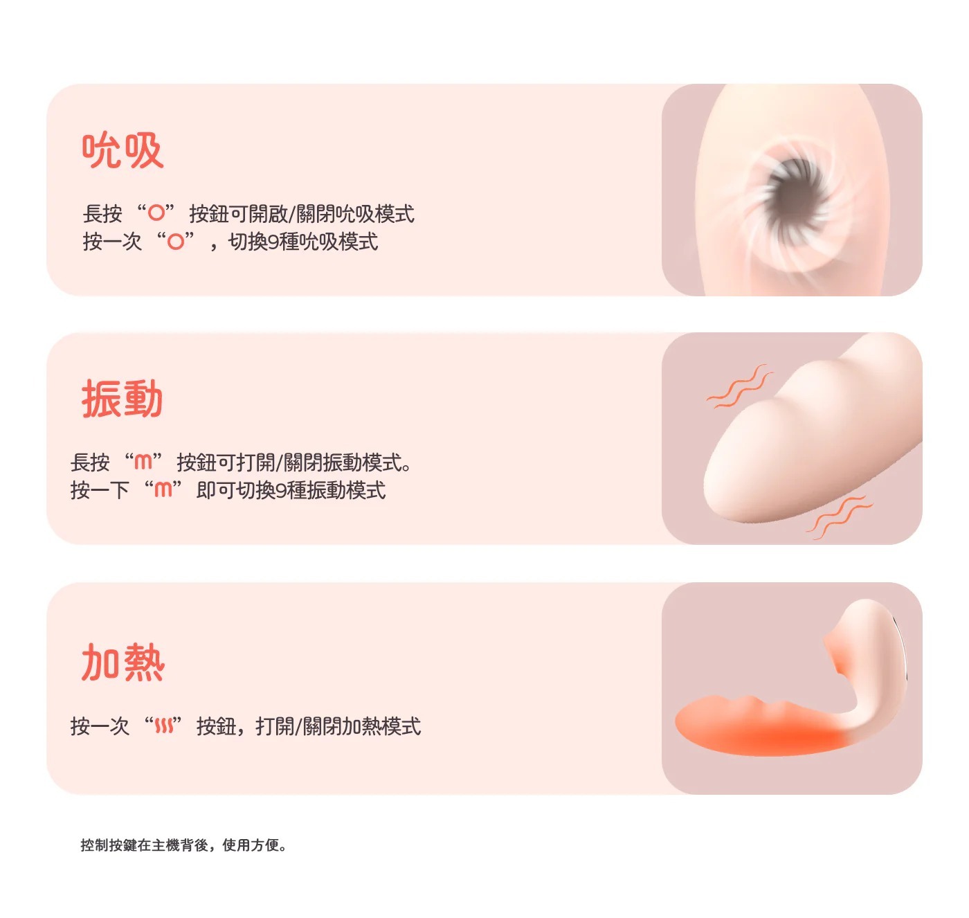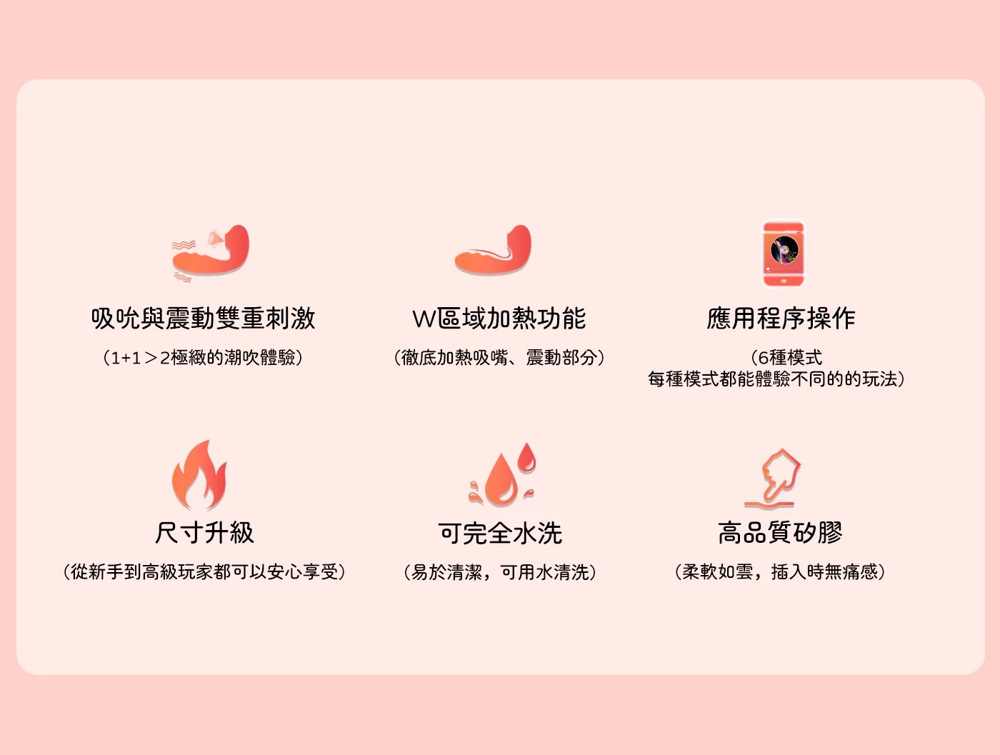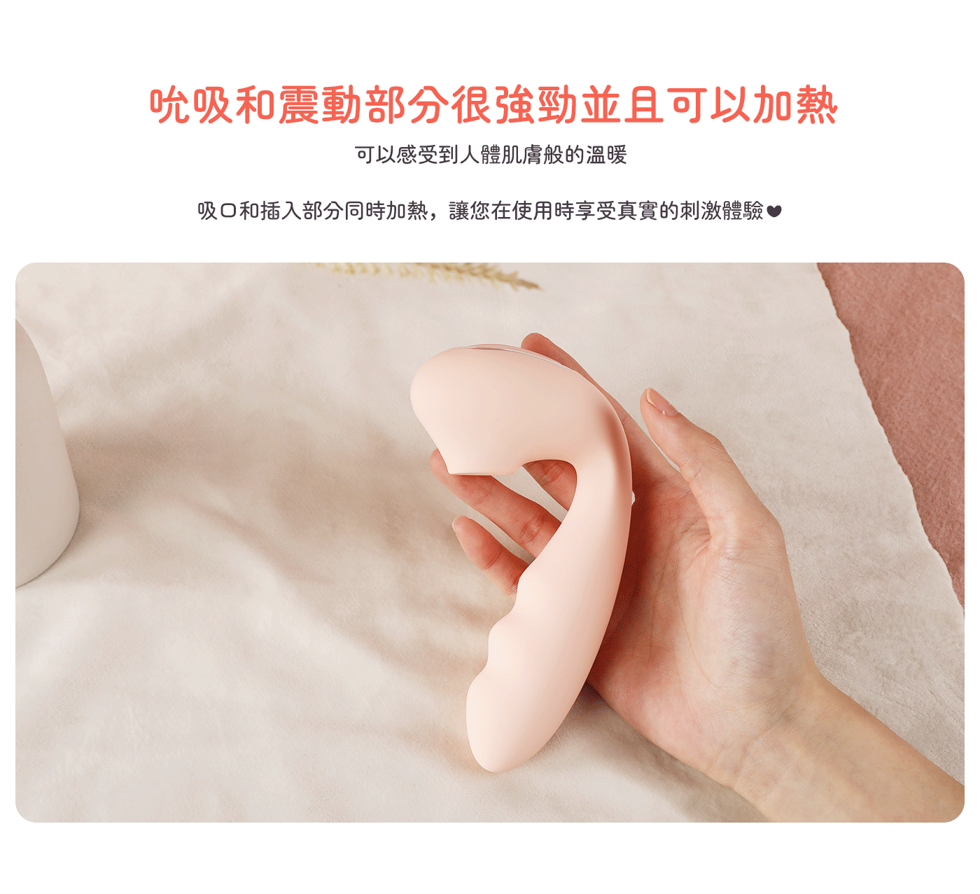 新款震動棒擁有9種吸吮模式和9種震動模式,讓你隨時隨地找到最合適的刺激,提升性滿足感。更新後的按鈕位置方便插入時的操作,配合雙重加熱功能,模擬真人肌膚的溫暖,提供貼心舒適的體驗。強勁的吸吮與震動結合,瞬間點燃高潮,讓你欲罷不能。