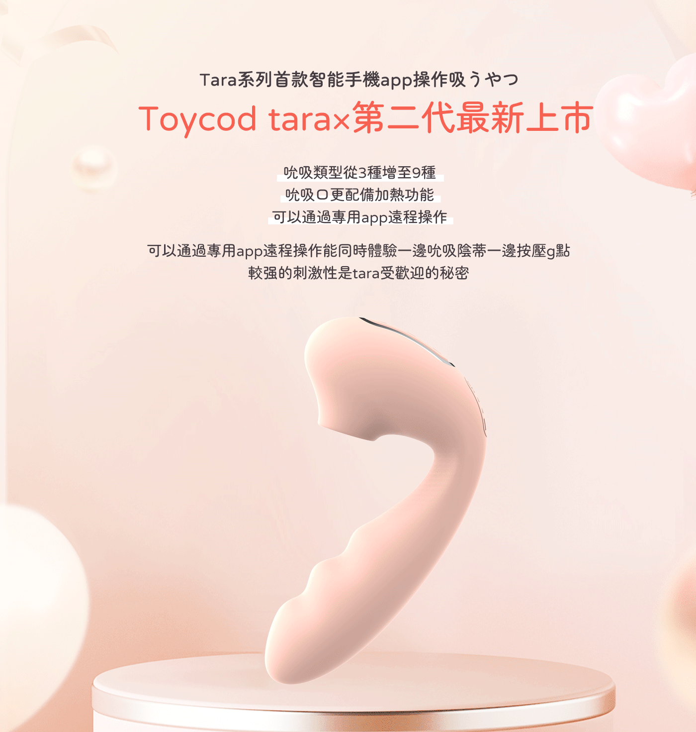 Tara系列首款智能手機APP操控震動棒,全新「遠程吸うやつ」第二代!9種吸吮+9種震動模式,雙重加熱功能,帶來極致刺激。通過藍牙遠程操控,適合戶外調教和居家使用。柔軟矽膠材質,靜音設計,生活防水。USB充電,隱密包裝,提供一年保修,讓您隨時隨地享受滿足感。