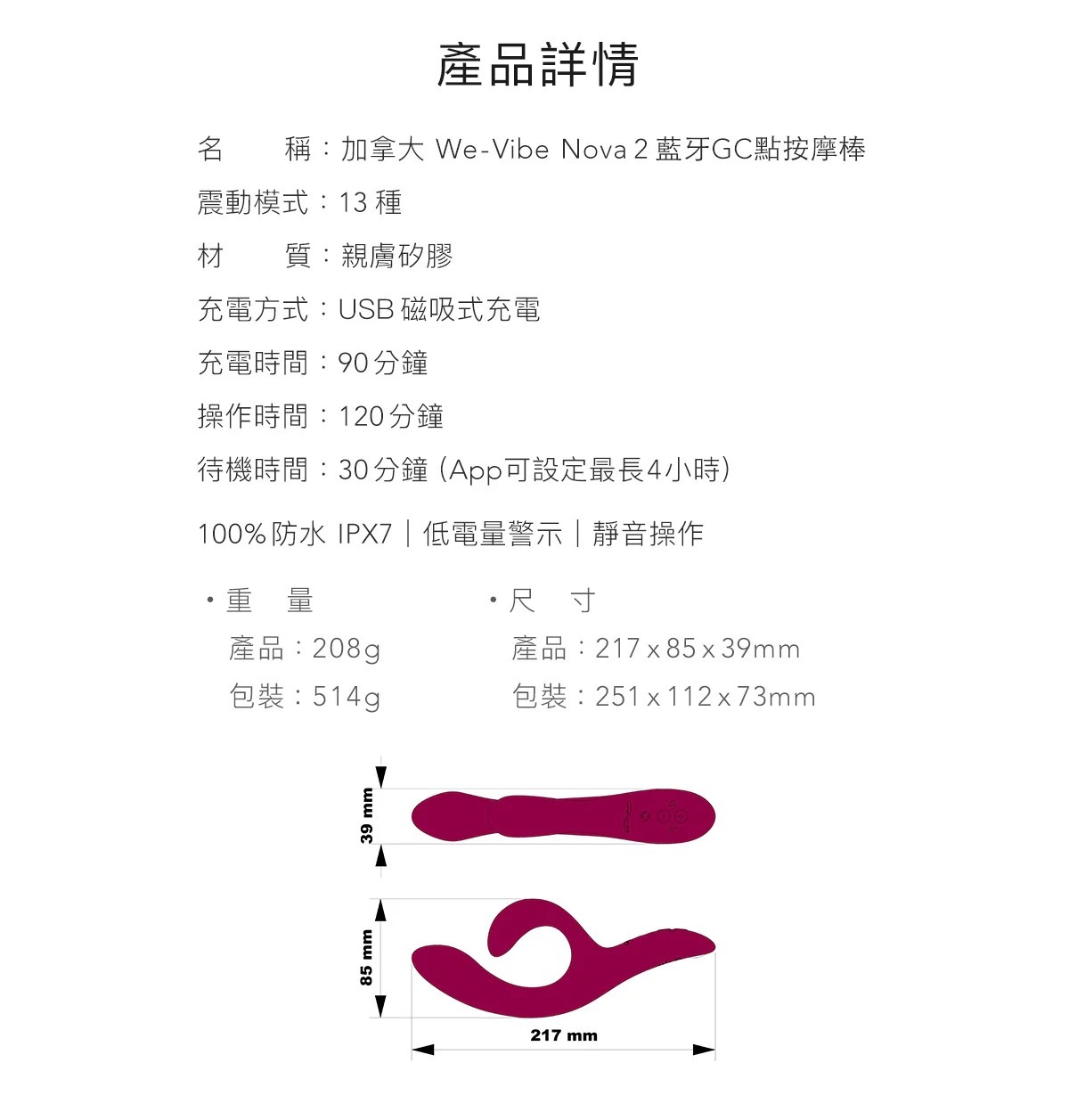 獨特人體工學設計: Nova 2的獨特設計確保在你移動時與陰蒂保持接觸,而流線型的內部震動器則可為G點帶來完美按摩體驗。
