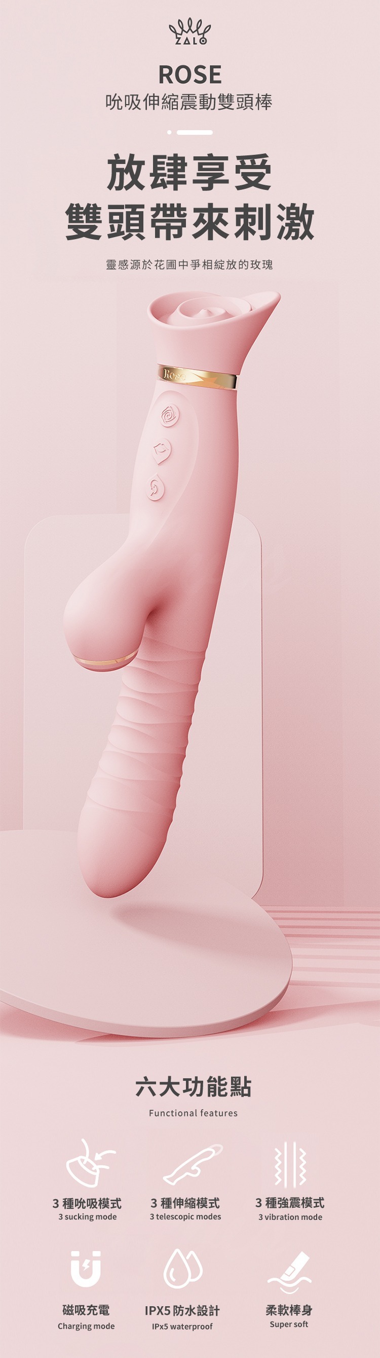 作為 ZALO 的 ROSE 系列經濟實惠的強力刺激器的一部分,Rose Thruster 提供逼真的穿透運動以及對陰蒂的吸力,以實現同步的口交感覺。
