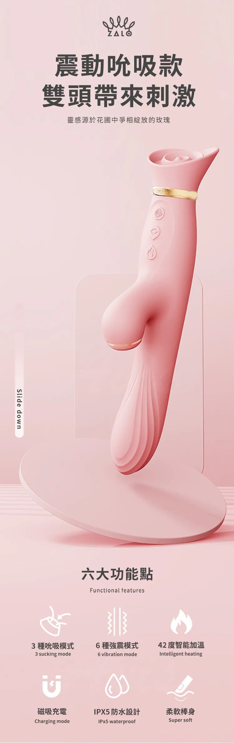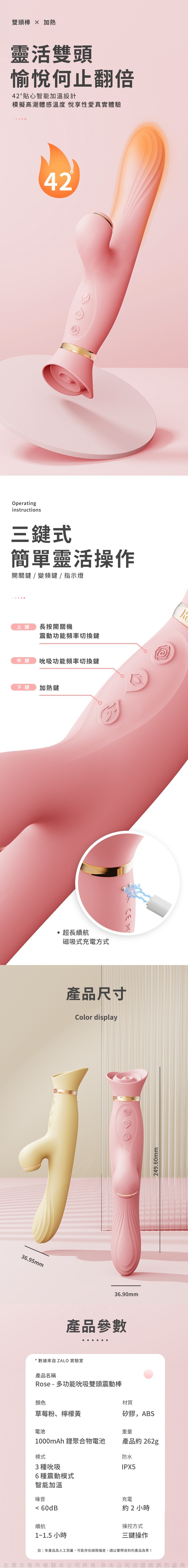 作為 ZALO 經濟實惠的強大刺激器 ROSE 系列的一部分,Rose Vibrator 具有針對 G 點和陰蒂的功能,具有多種不同的功能。