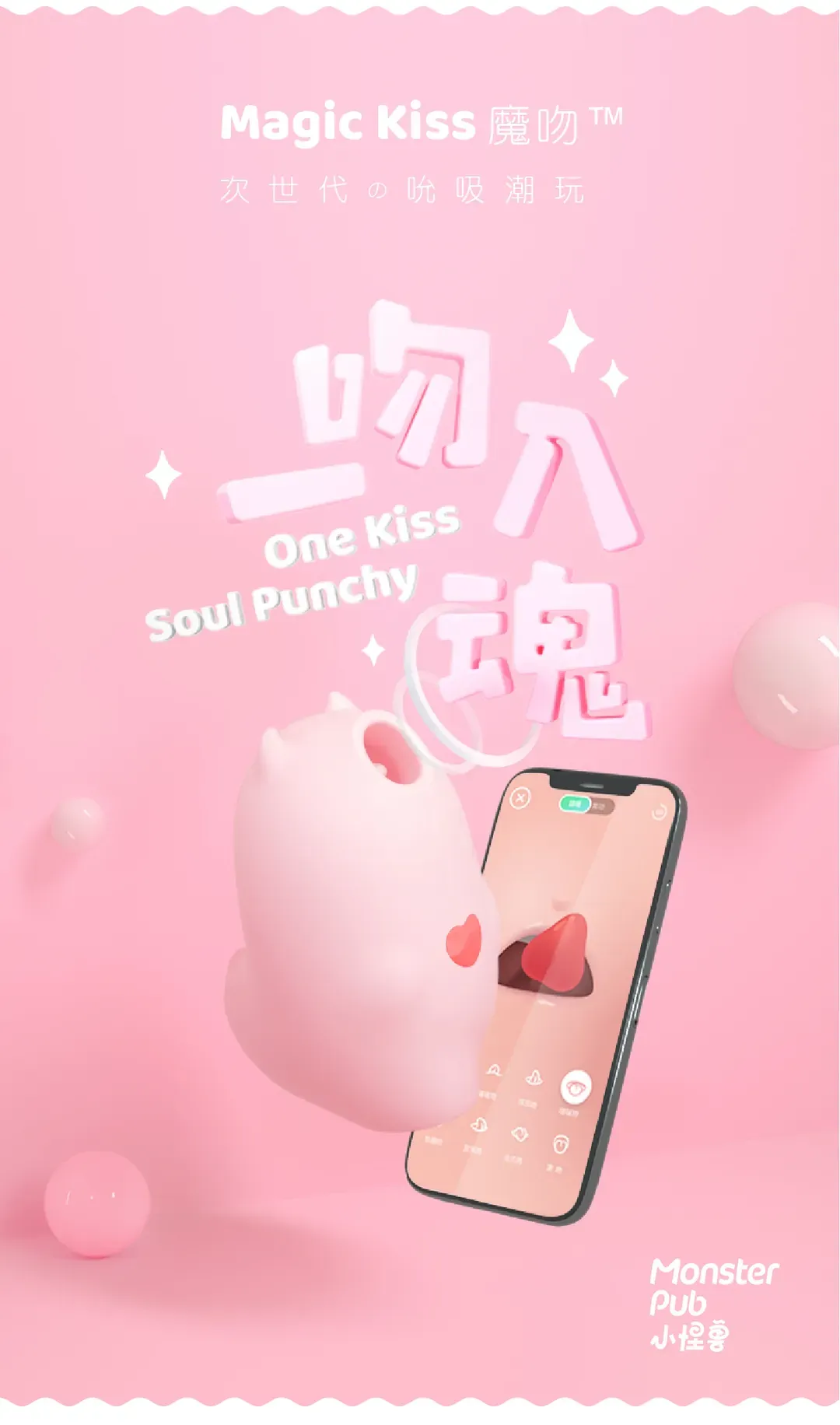 兼具吸啜、舔舔、震動於一身嘅小怪獸魔吻 Magic Kiss,想要輕柔前戲,定係極速高潮,由、妳、決、定!