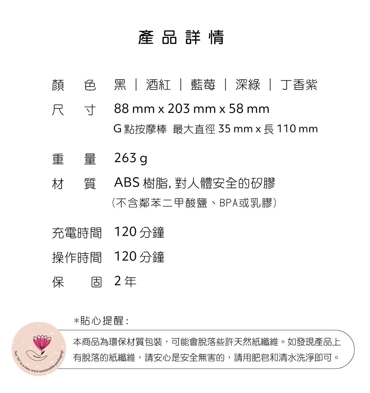 | 物料 | ABS, 人體安全矽膠, 沒有鄰苯二甲酸鹽, BPA or latex |