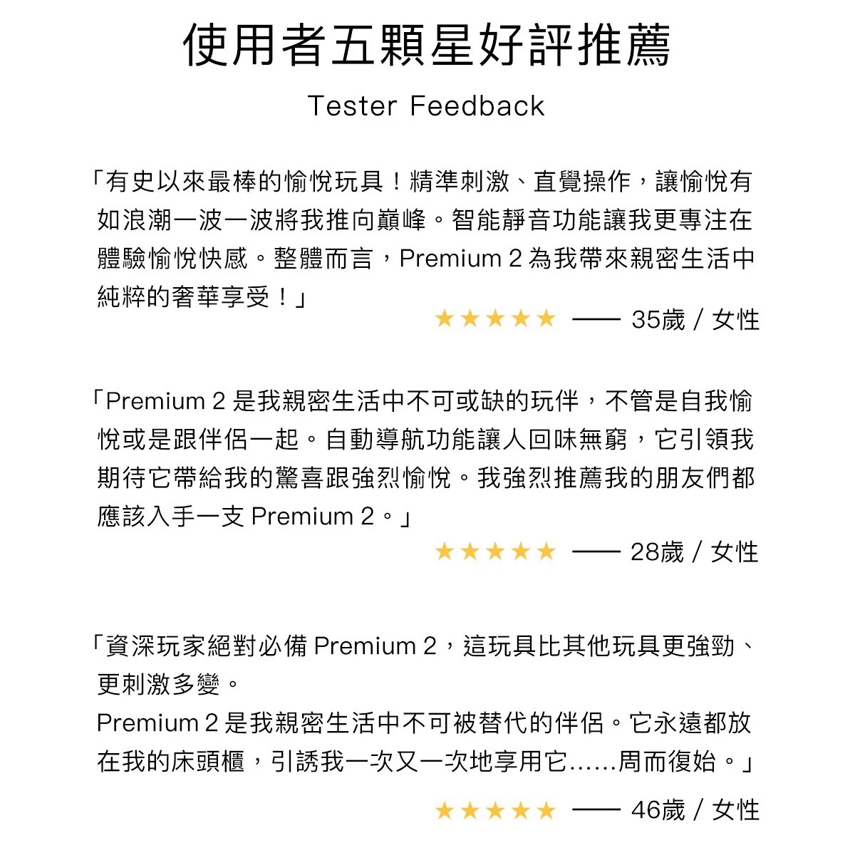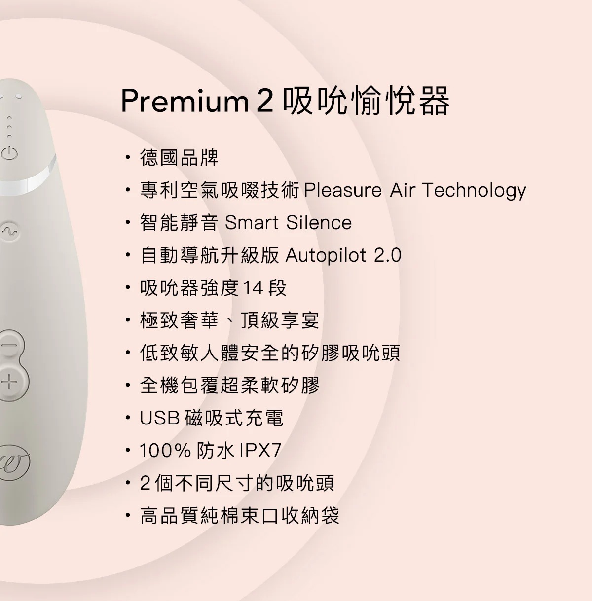 WOMANIZER 團隊為了精心改良 Premium 2 陰蒂吸啜器,新一代吸吮器參考了多達 1600 名用家的評價回饋,完善設計。Premium 2 吸啜器全新升級了 Autopilot 功能,無法預測下一強度級別,隨機變化帶來驚喜刺激。