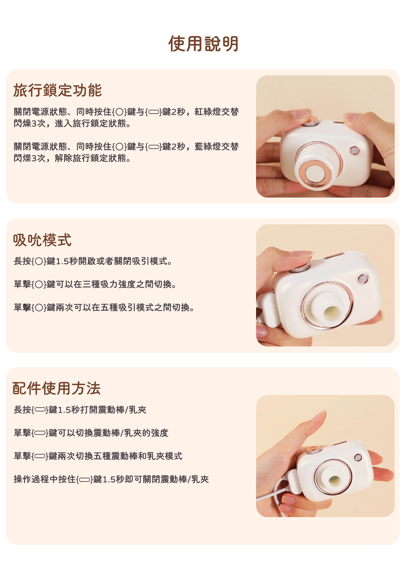 2023年新款陰蒂吸吮跳蛋「Alberta」來到香港!這款可愛的遠程操控相機玩具結合乳夾和震動跳蛋,提供三重刺激,帶來體內外的雙重快感。3種震動模式和5種吸吮模式模擬愛人吮吸陰蒂的感覺,搭配玫瑰金金屬配件,展現高貴質感。柔軟矽膠材質、靜音設計、生活防水,並附一年保修和隱密包裝。