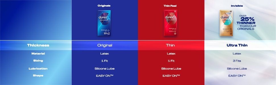 Durex 杜蕾斯 Invisible Regular Fit 是我們最薄的避孕套,可最大限度地提高敏感性。旨在最大限度地提高靈敏度,同時提供高水平的安全性和保護。這些避孕套是帶有矽膠潤滑劑的透明天然橡膠乳膠避孕套。為幫助您在第一時間將其正確安裝,鋁箔上的杜蕾斯標誌向您展示了避孕套的底部。標稱寬度:56mm+-。杜蕾斯質量 - 100% 電子測試,每批次進行 5 次以上的質量測試。每包 10 個。
