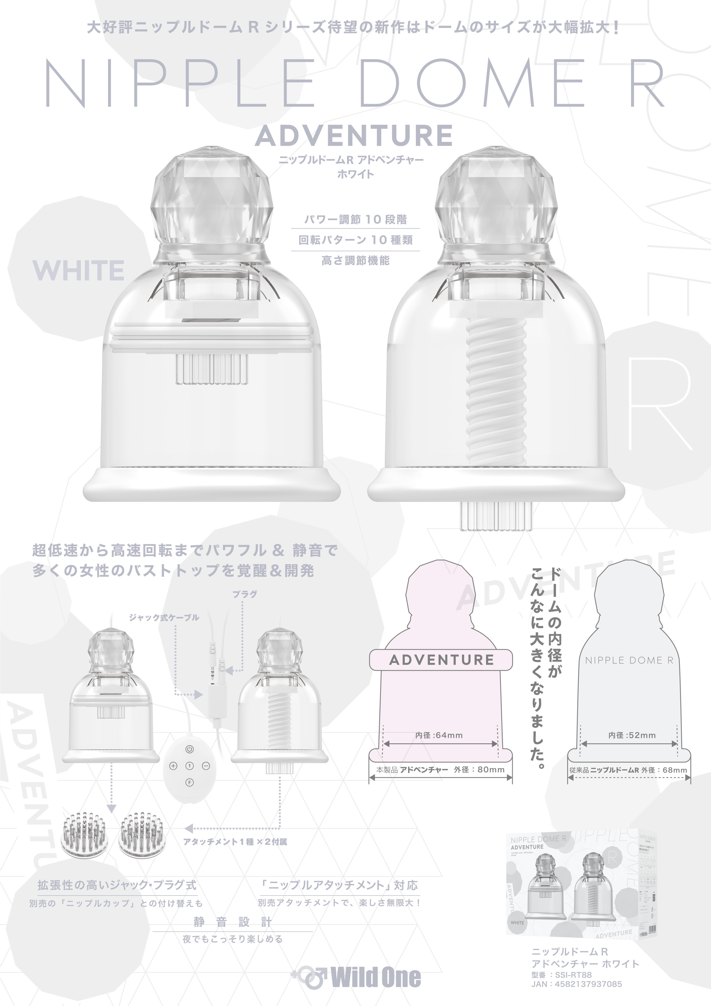 通過增加1.2厘米的圓頂寬度,我們能夠滿足更多乳頭愛好者的需求!這款產品可覆蓋幾乎所有女性的乳頭,並提供多種附件可供選擇。作為一款廣受歡迎的乳頭開發產品,它的用戶基礎將進一步擴大。擁有與傳統款式相同的功能,長期的粉絲們可以放心使用。流行的手柄式吸力圓頂易於高度調節,內置鋰電池控制器可提供多種功率和旋轉模式。無線設計方便充電和存儲。此外,它兼容所有類型的乳頭附件,讓您盡情享受各種體驗。