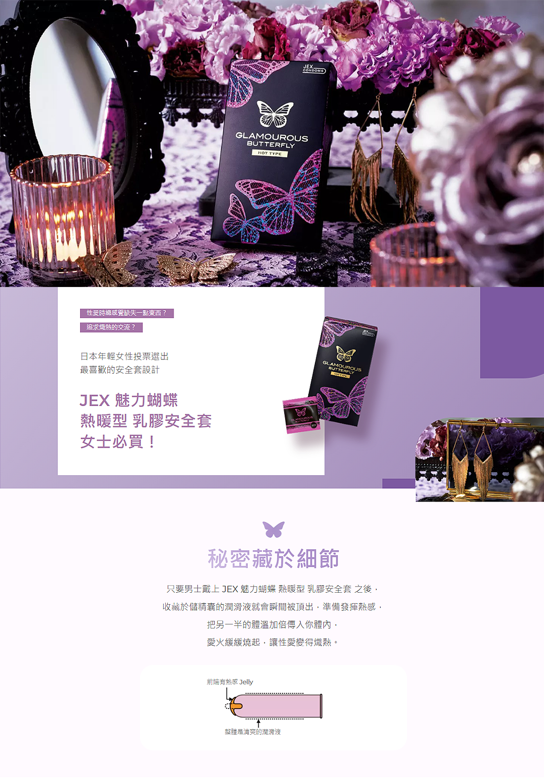 JEX 魅力蝴蝶 熱暖型 乳膠安全套 12片裝