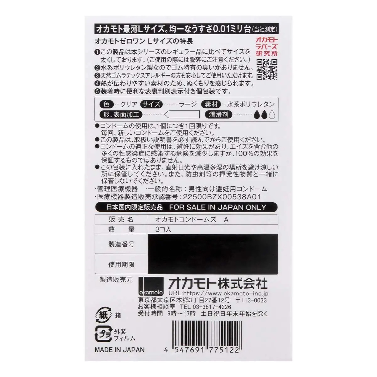 想要無套感覺?Okamoto 岡本 0.01 大碼超薄安全套幫到你!岡本 0.01 為突破性超薄Condom,厚度為0.01mm (0.01-0.019 mm) (岡本的檢定標準),採用PU物料,比乳膠安全套更强韌!超抵!安全可靠,讓你和伴侶瞬間進入高潮!