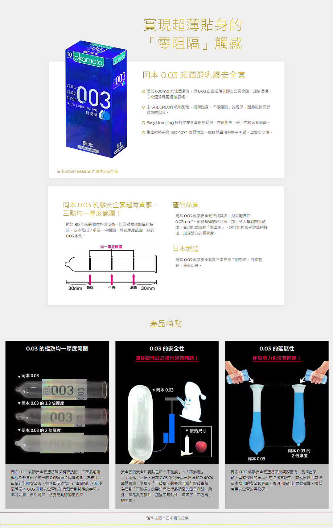 岡本 0.03 乳膠安全套於日本自家工廠製造,日本製造,信心保證。