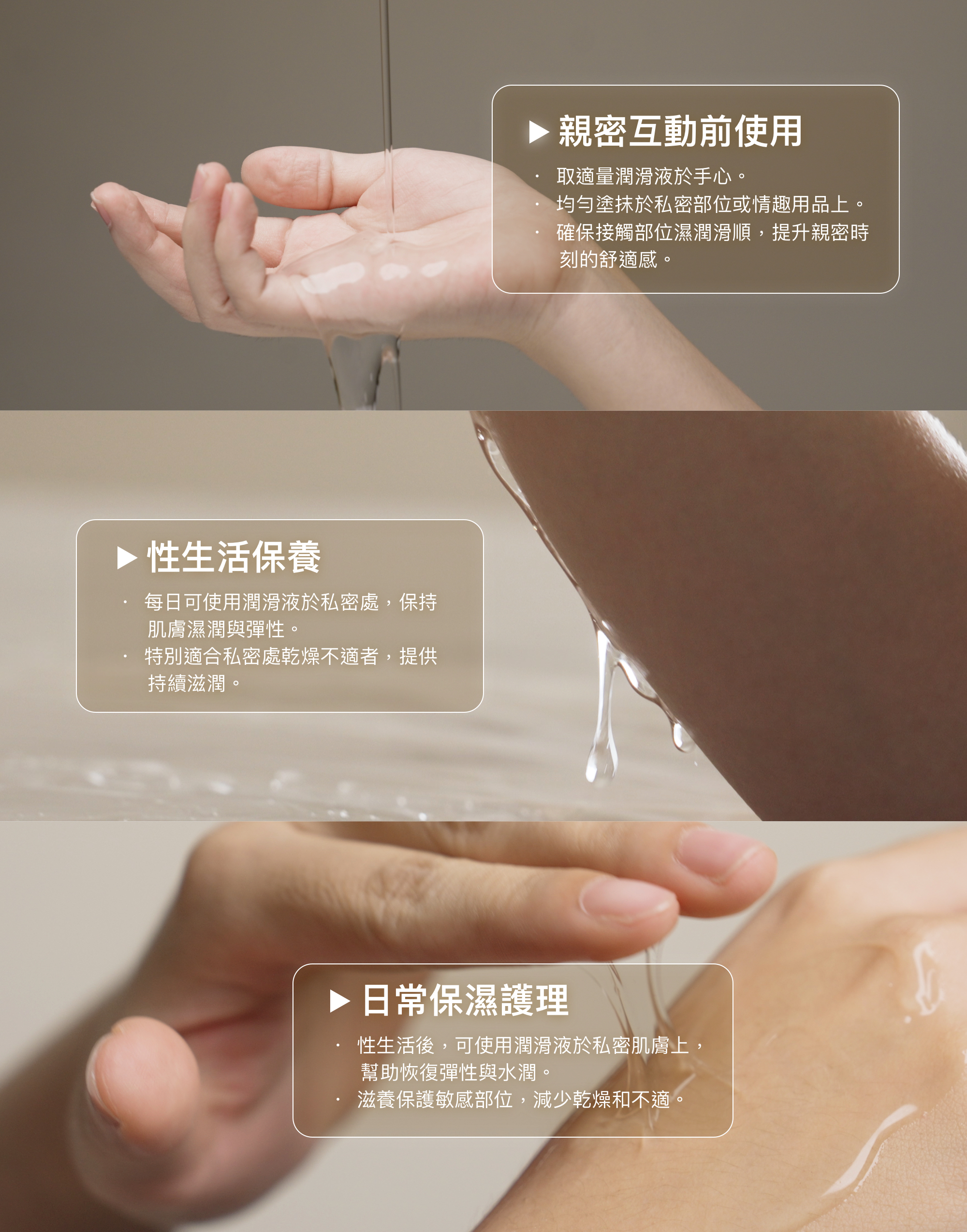 本產品可配合安全套一起使用,不含殺精劑,水性配方,清洗容易。
