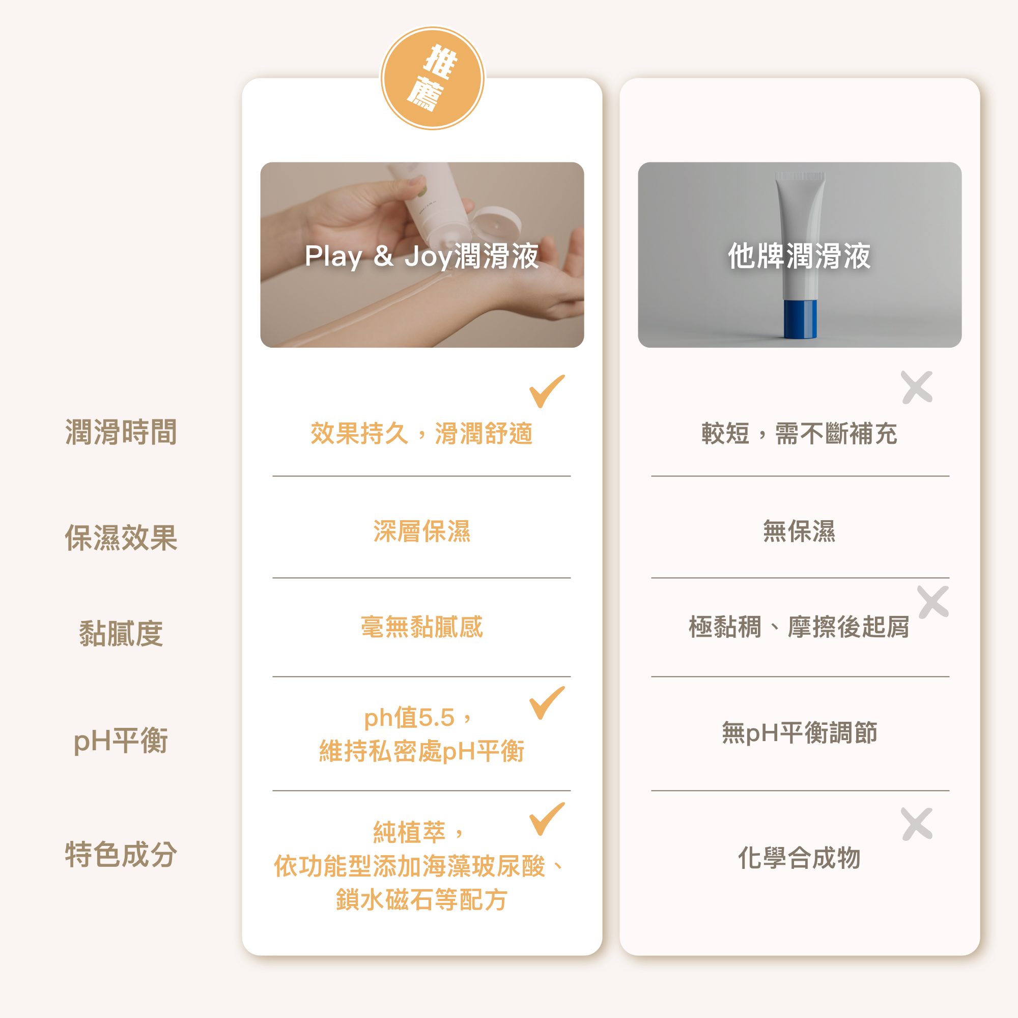PLAY & JOY 潤滑液可依實際需要重複使用於男女私密部位之按摩潤滑保養並增添情趣。