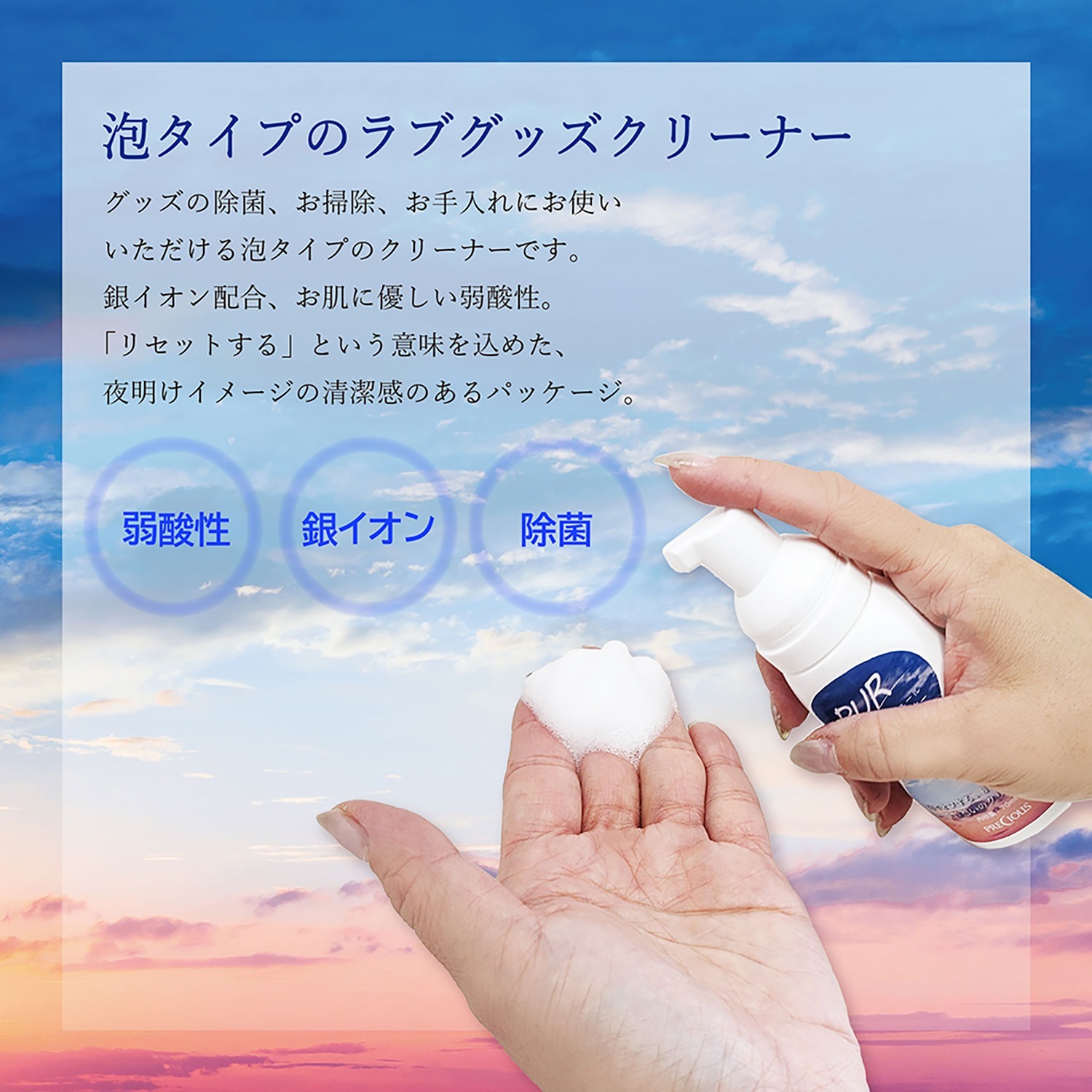 這是一款除菌清潔劑,專為使愛情玩具保持清潔安心而設計。由於是泡沫形式,因此無需使用水,就可以輕鬆清洗玩具。具有弱酸性,對肌膚溫和,並通過添加銀離子來增強除菌效果,確保玩具的清潔安全。由於接觸到嬌嫩的部位,因此建議在使用前後對玩具進行護理。直接將清潔劑塗抹在玩具上,然後用乾布或紙巾擦拭乾淨。包裝以黎明的形象為設計理念,意味著重啟,適合女性的房間擺設。