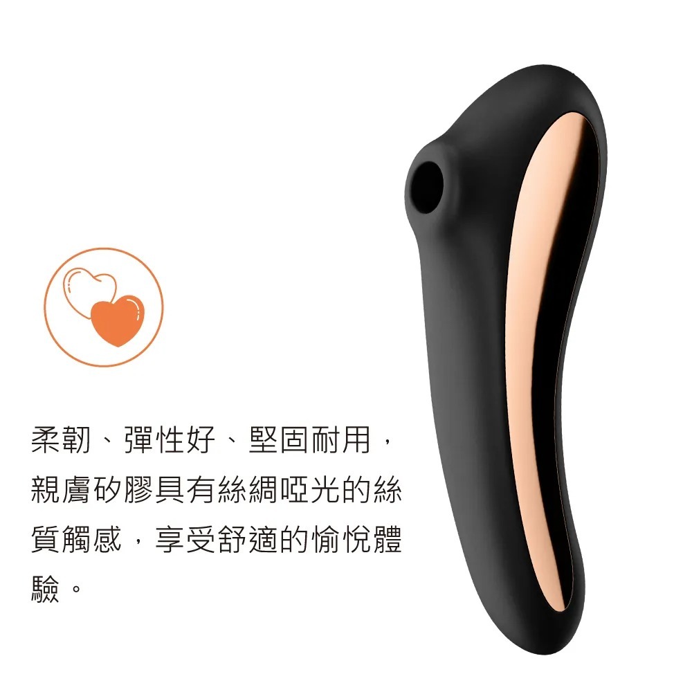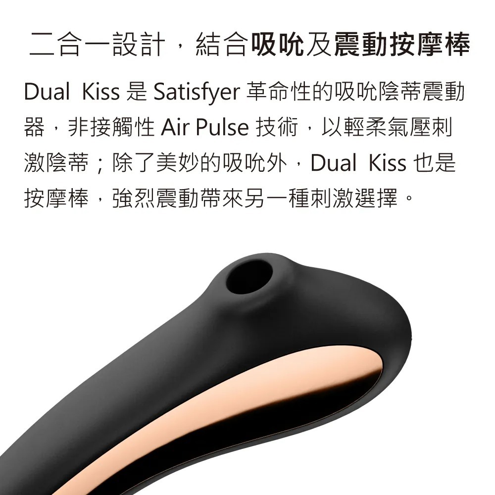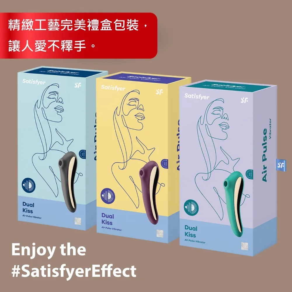 Satisfyer Dual Kiss 可以做很多事情:由對身體友好的矽膠製成的空氣脈衝震動器也可以用作 G 點震動器,以滿足您的所有需求。圓形塗抹頭可以通過性感的脈動壓力波刺激您的陰蒂,或者您可以通過略微彎曲的振動軸享受刺激的 G 點按摩。它還以精緻的外觀和優雅的金屬細節吸引眼球!