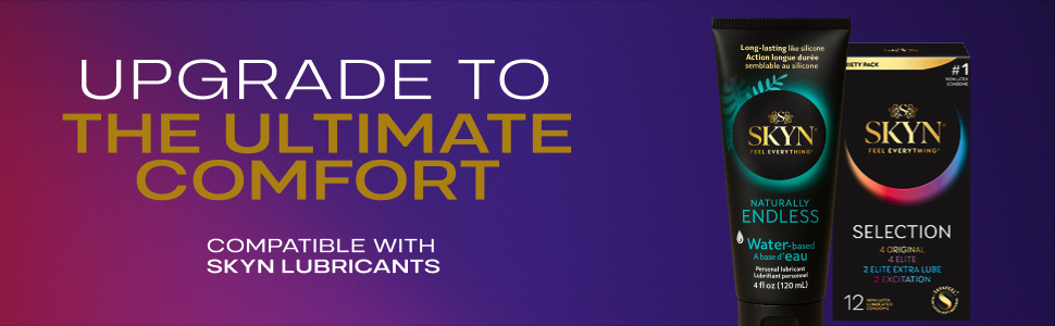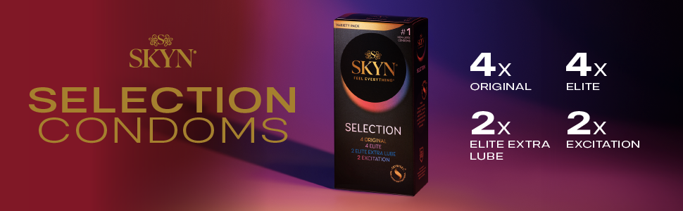 Non-Latex Lubricated Condom Variety Pack:該品種包包含 4 個 SKYN 原裝避孕套、4 個 SKYN Extra Studded 以提供更多刺激和愉悅,以及 2 個 SKYN Extra Lubricated 與 40% 以上的超光滑潤滑劑