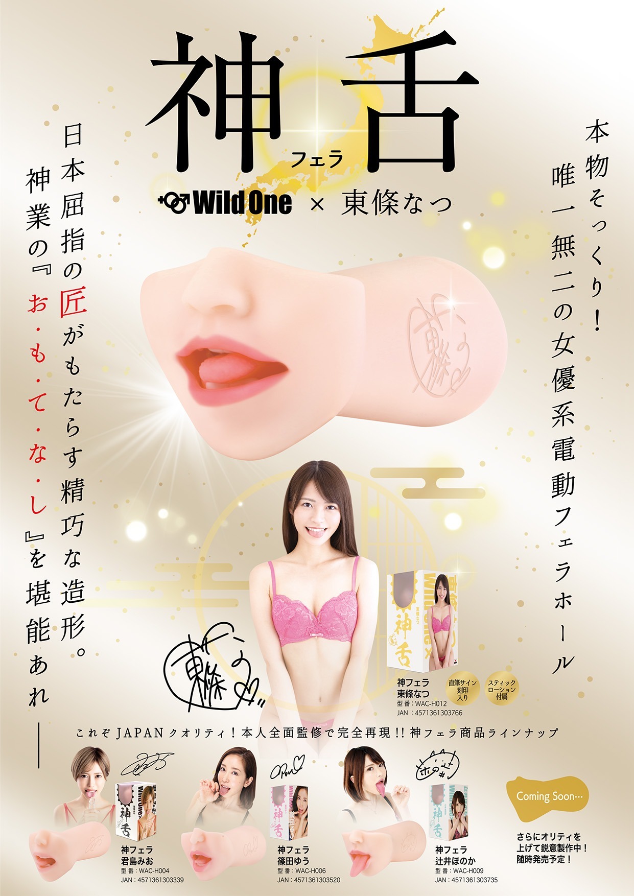 帶有東條夏香味的特別潤滑液也有銷售。與東條夏一起發出聲音的深喉與 AV 作品的同步率非常好。攻擊喉嚨後部的腭咽腺,掌握口交!