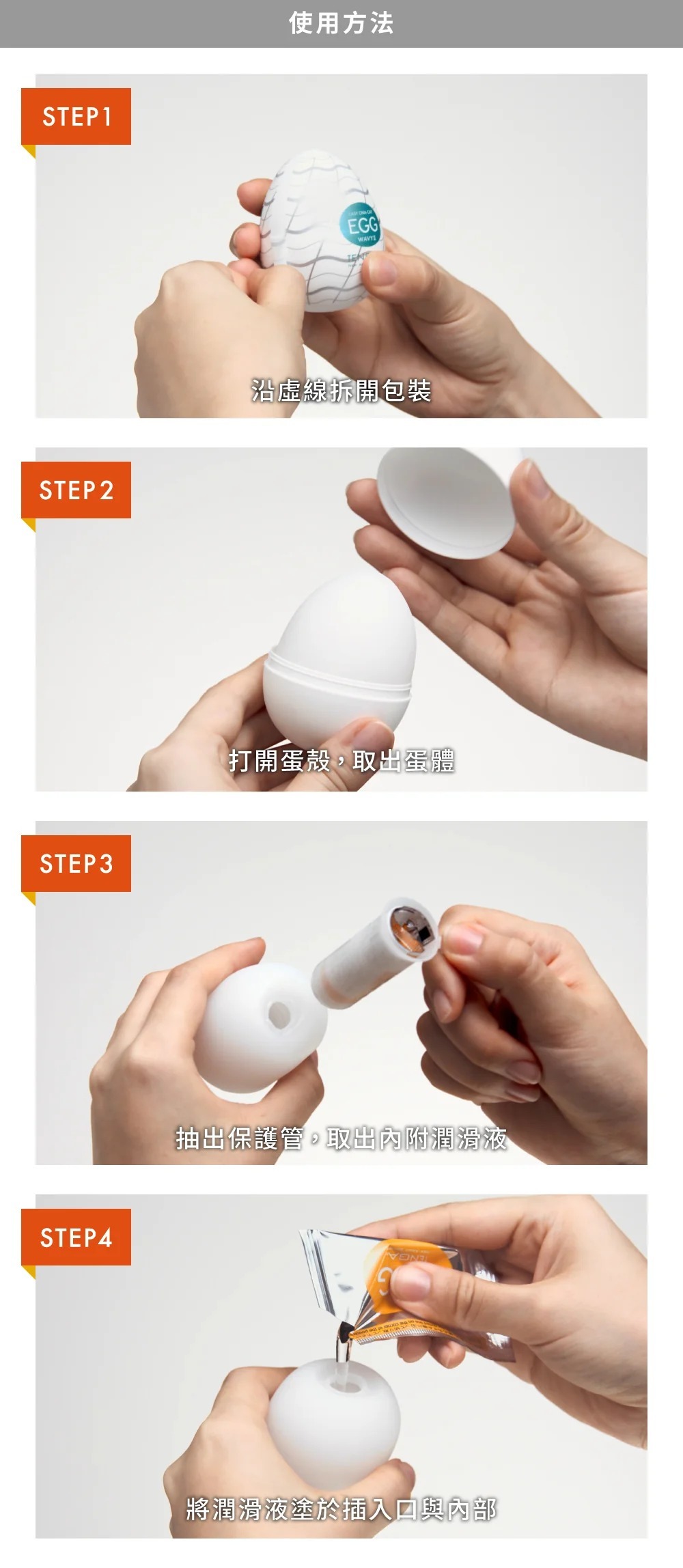 2) 打開蛋蓋,取出蛋白,加入附上的潤滑劑。