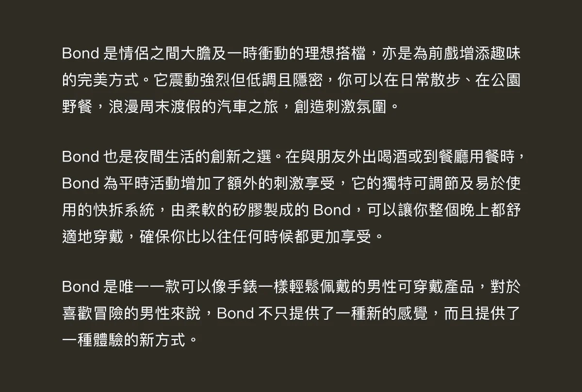 ◼️Bond智能持久環帶上後,不但刺激男生敏感部份 。在歡愉時,亦可刺激對方敏感部位。