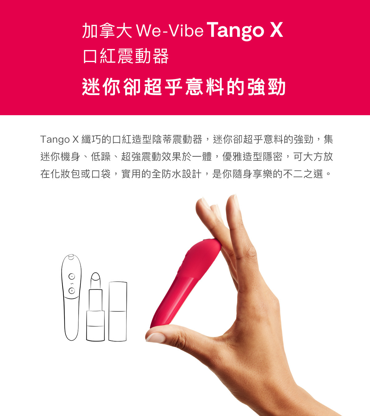 為了慶祝 We-Vibe Tango 售賣 10 週年,品牌特別推出 We-Vibe Tango X【 十週年紀念版 】,將品牌的經典唇膏型震動器 Tango 改頭換面,以更優雅的設計及更強勁性能呈獻您眼前。