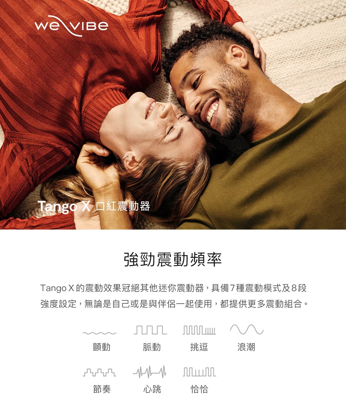 We-Vibe Tango X 小巧玲瓏的體積,隱藏著無窮威力!8 種震動力度,7 種震動模式,提供 56 種獨特配搭,無論是輕微挑逗或強力刺激,都得心應手,長玩不厭。