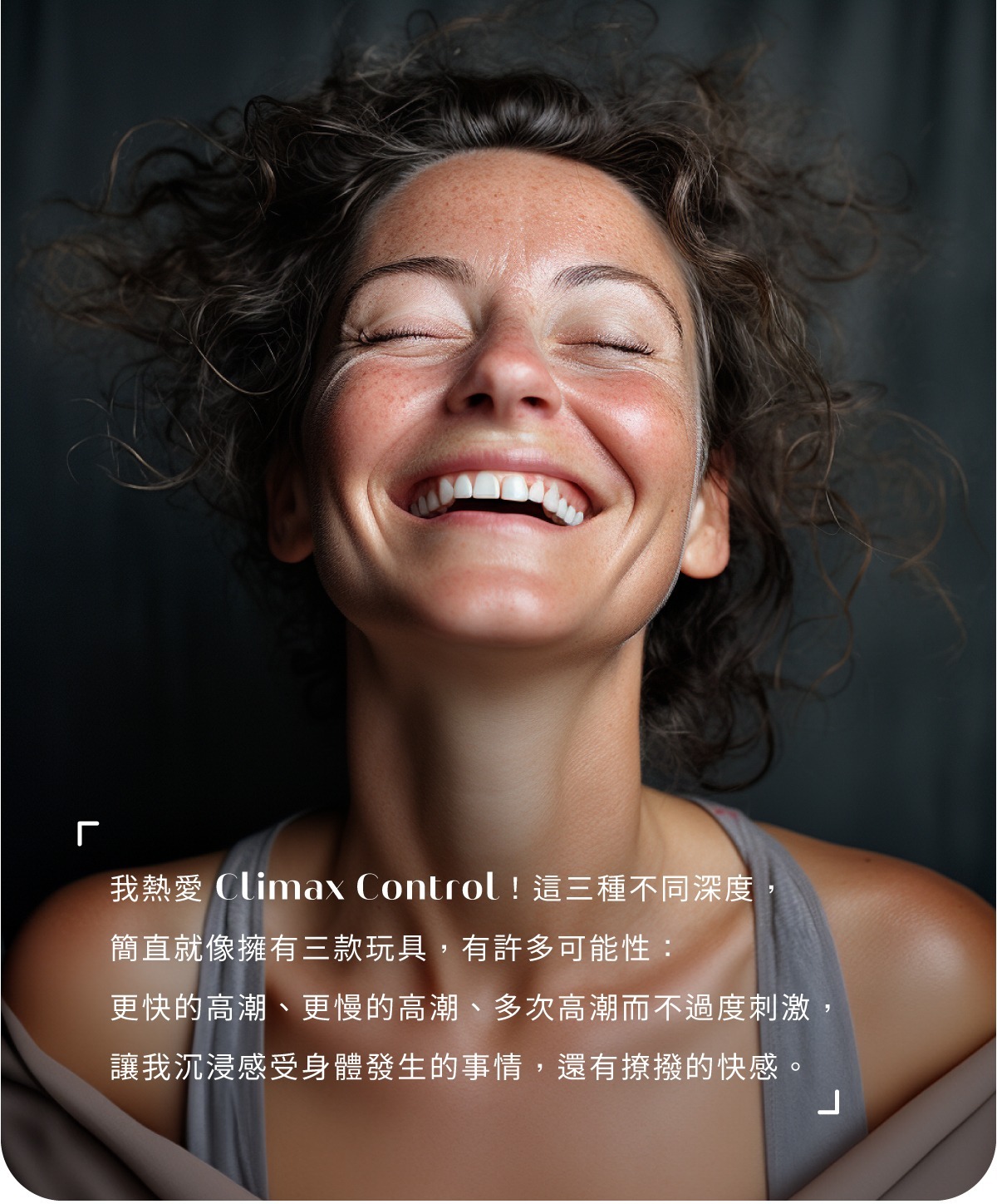 Climax Control 功能 : 新款 Climax Control 改變了 Pleasure Air 氣壓波的深度,以實現更豐富、更飽滿的感受