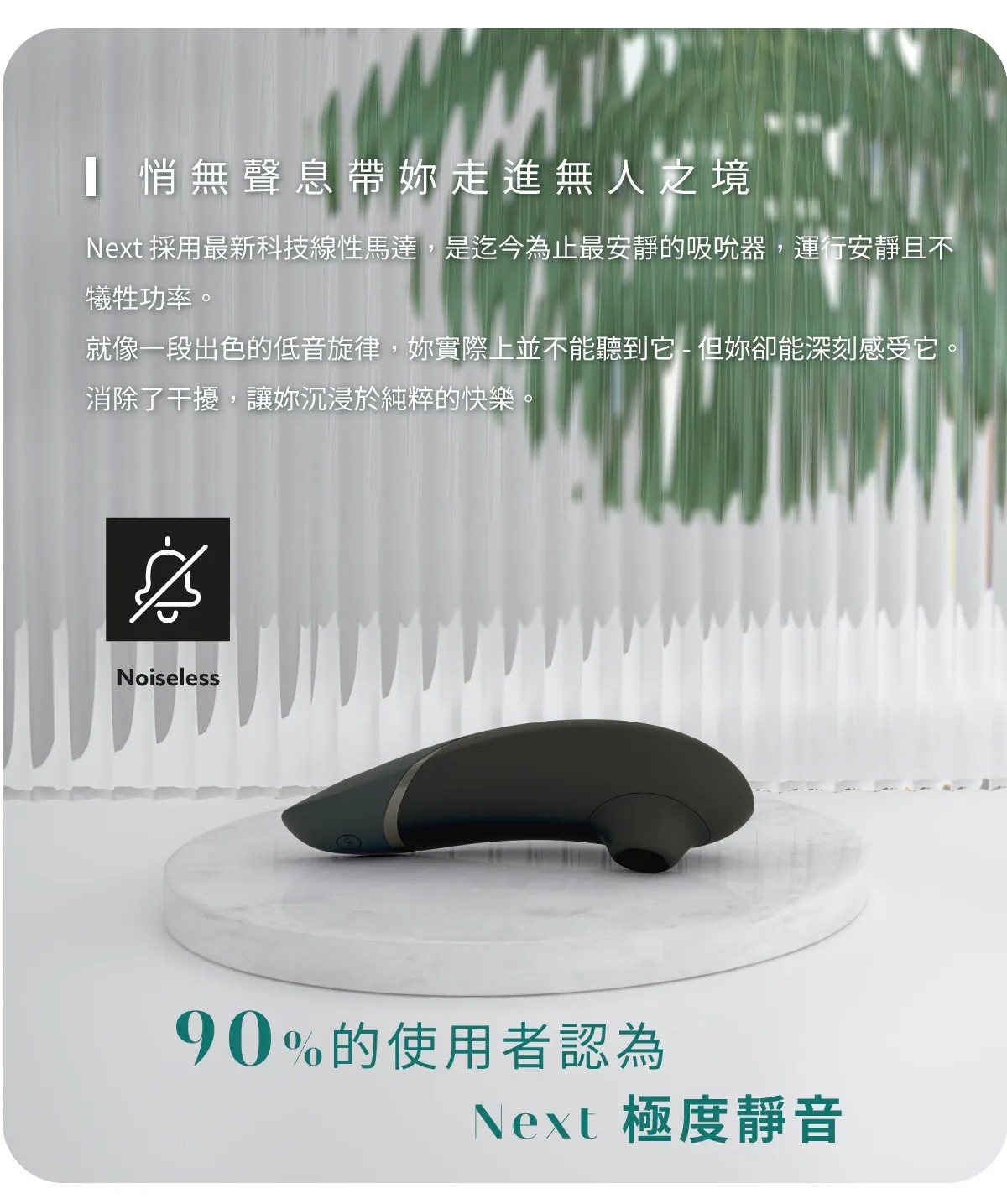 Next 是Womanizer迄今為止最靜音的型號,專為隱秘玩樂設計。摒棄干擾,,只餘純粹的快樂。